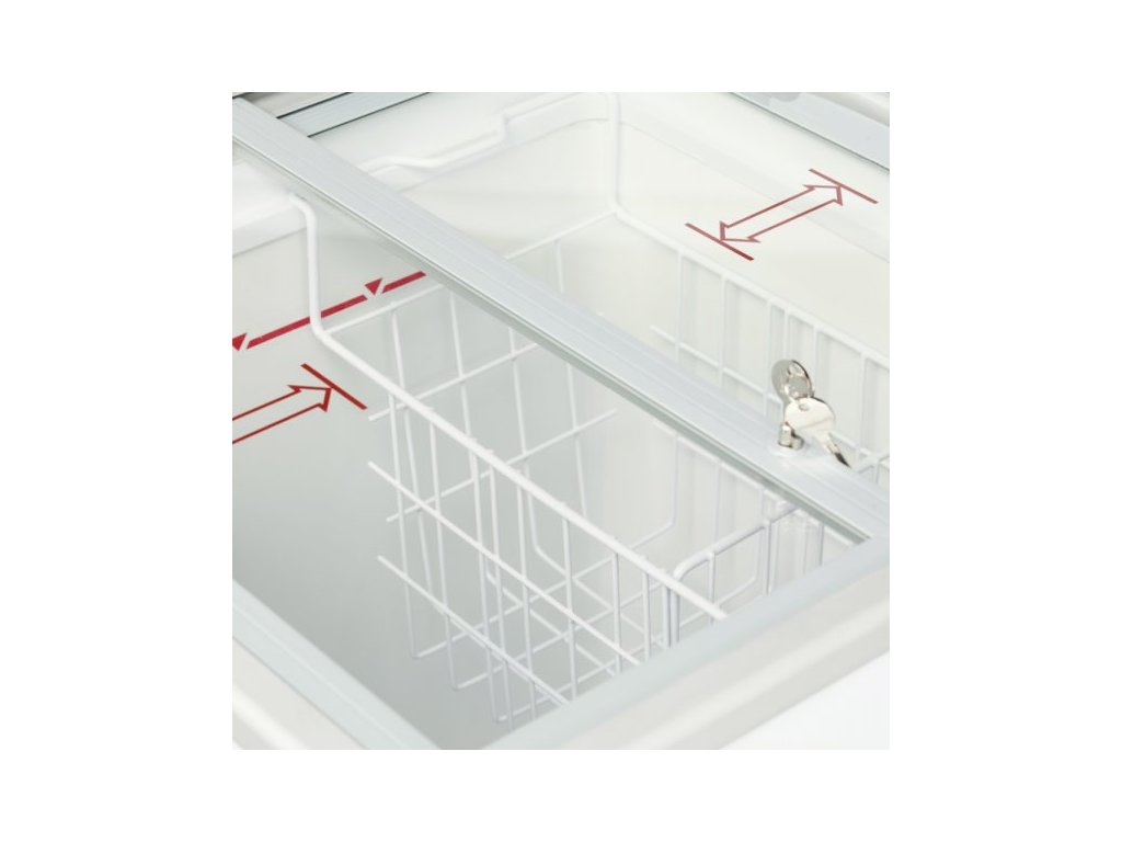 • Rovné posuvné sklenené veká so zámkom